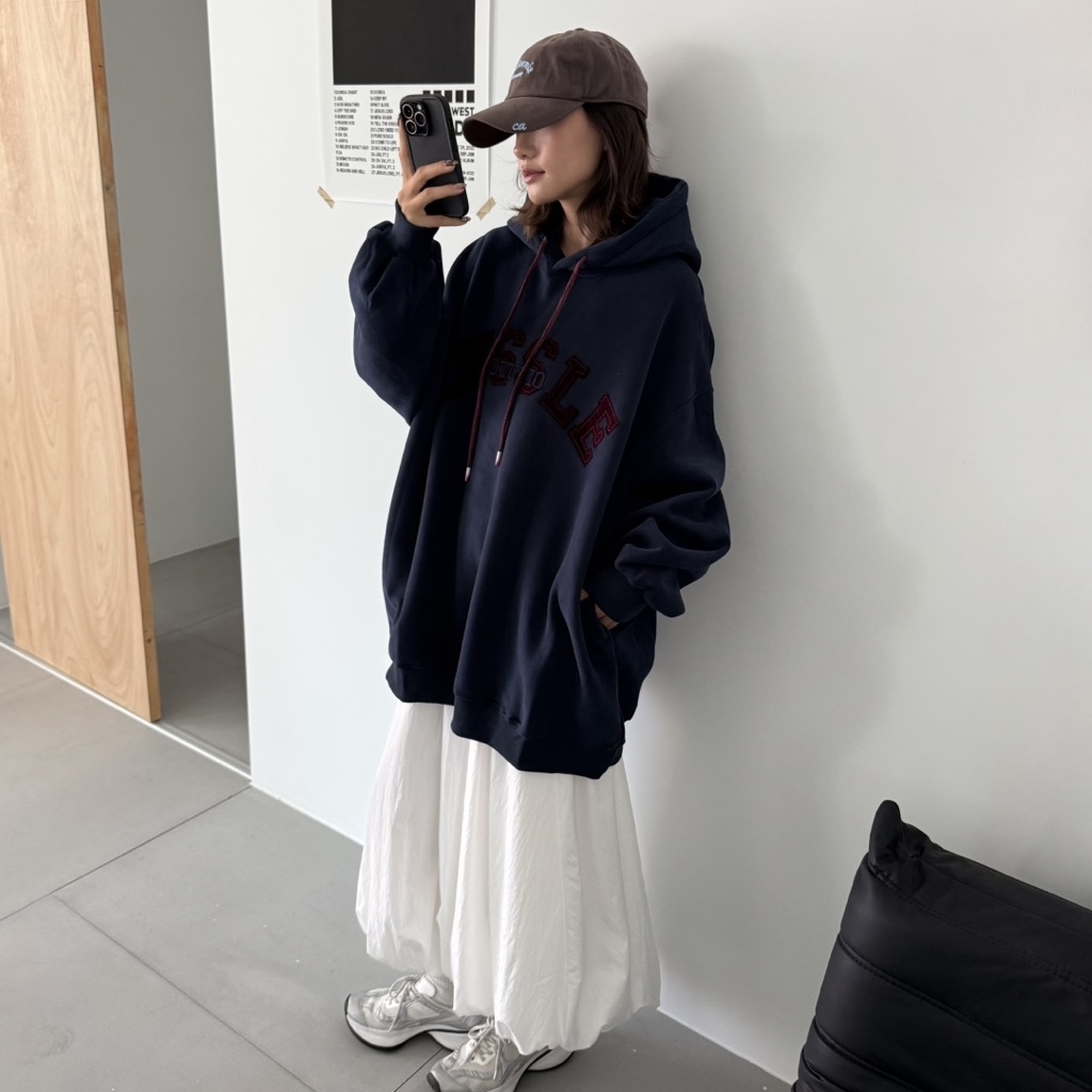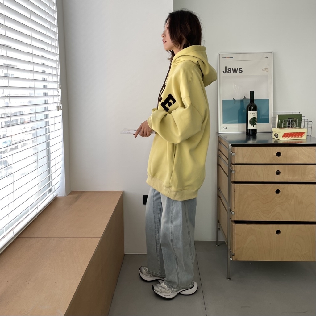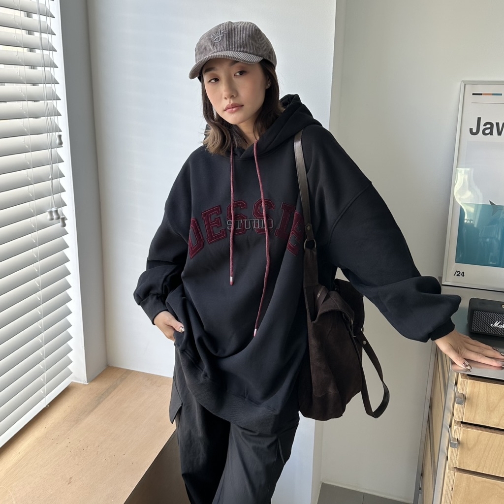 男女通殺貼布Oversize 刷絨寬鬆帽tee