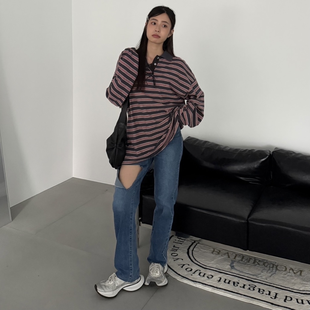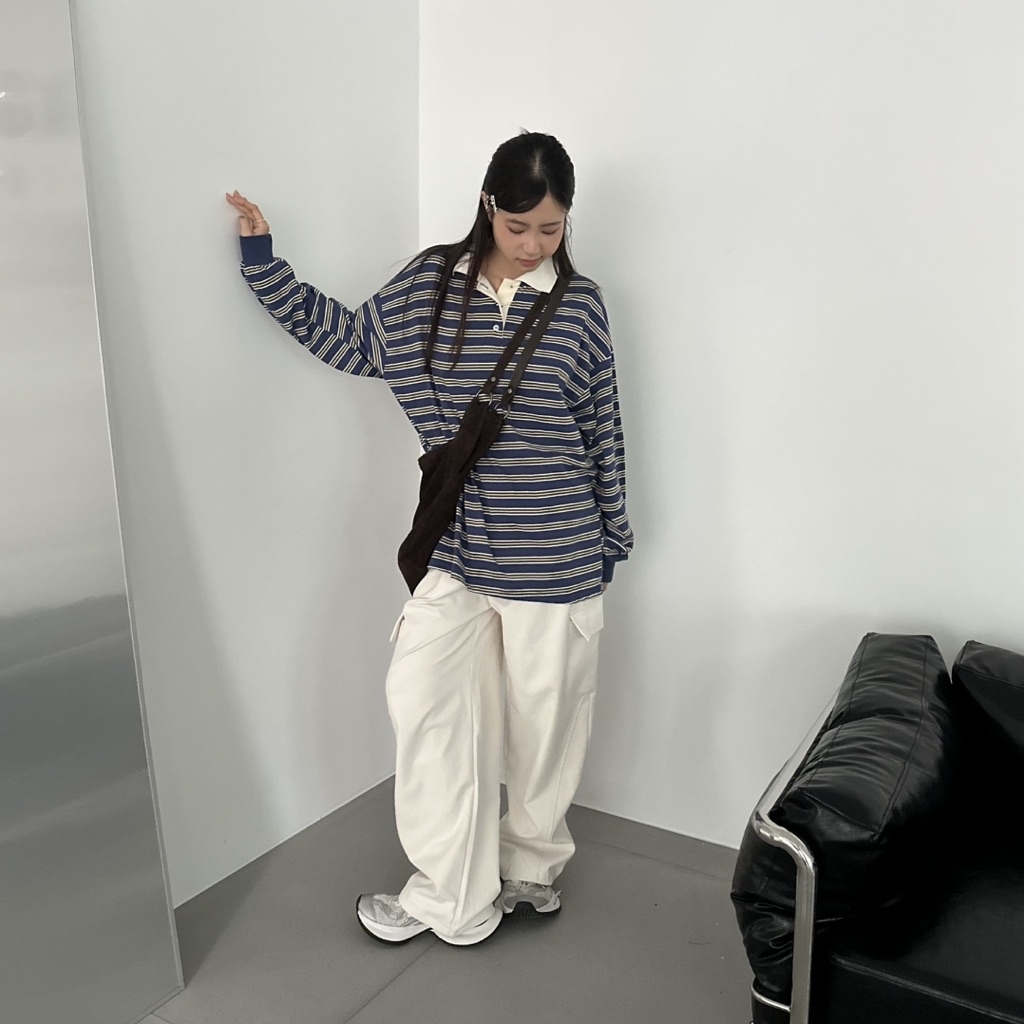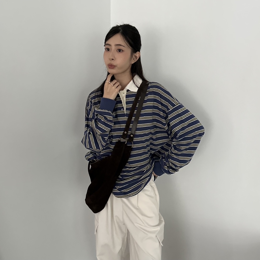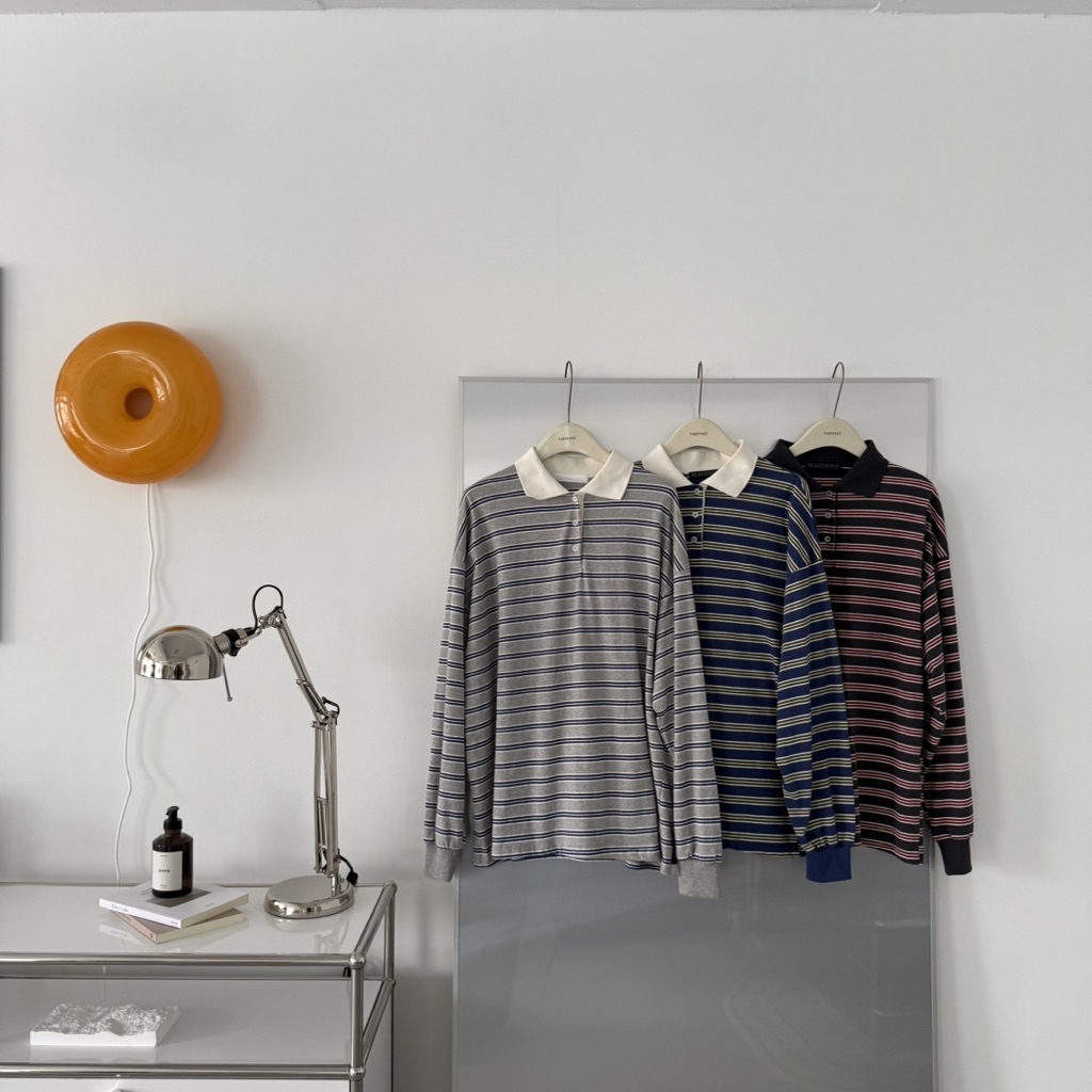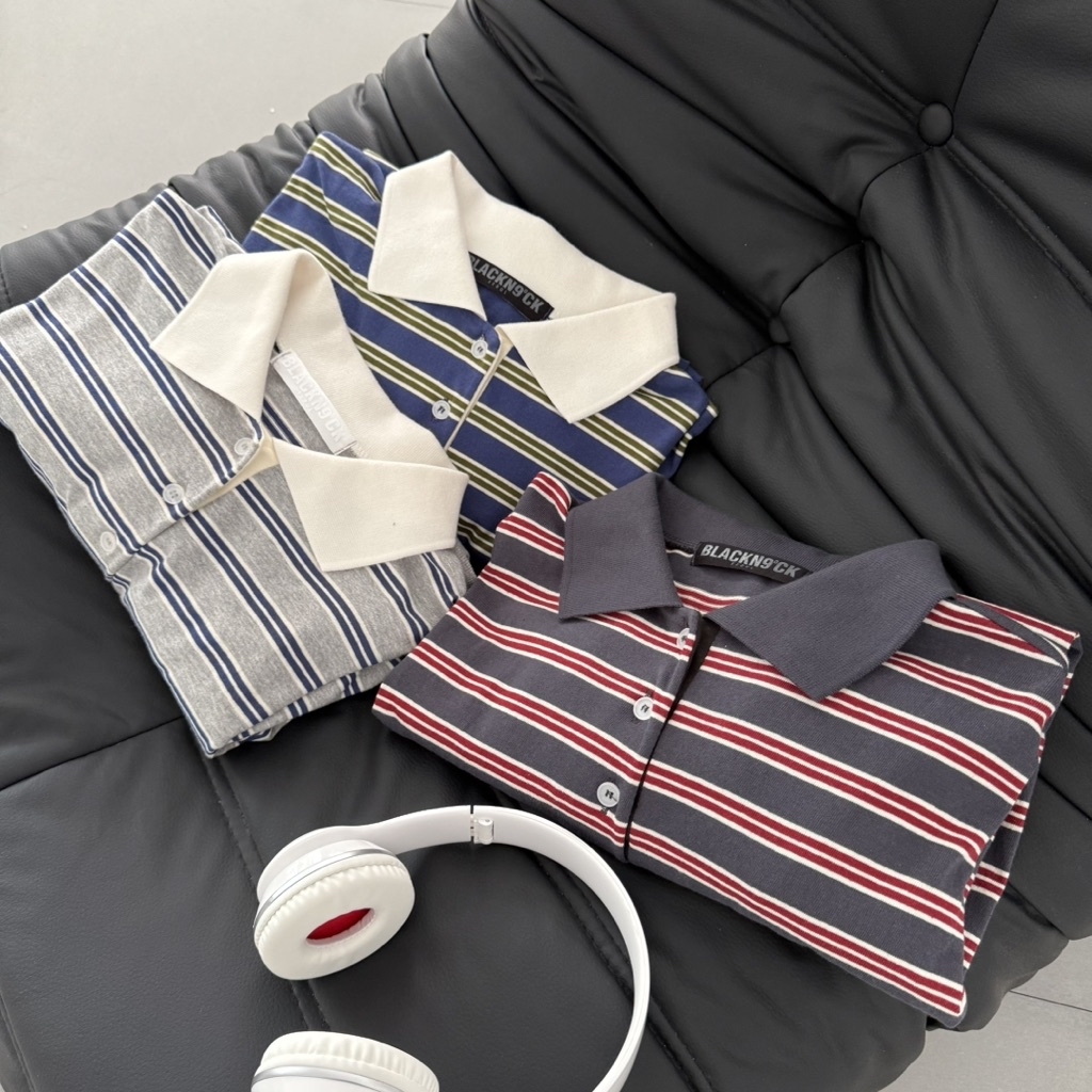 街上歐膩都在穿的韓國條紋POLO領大學tee
