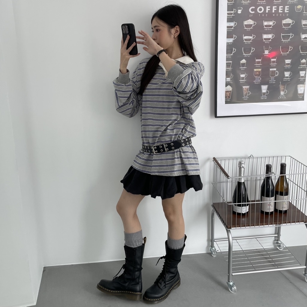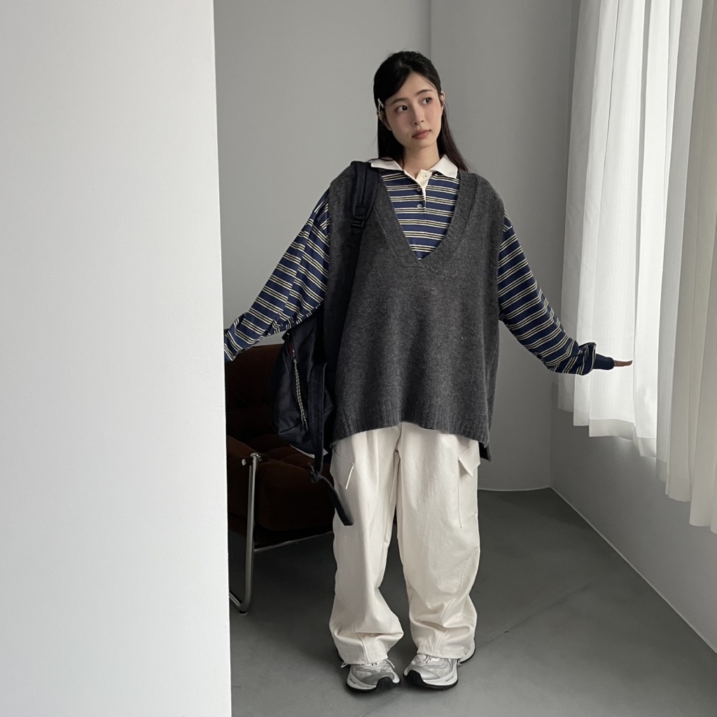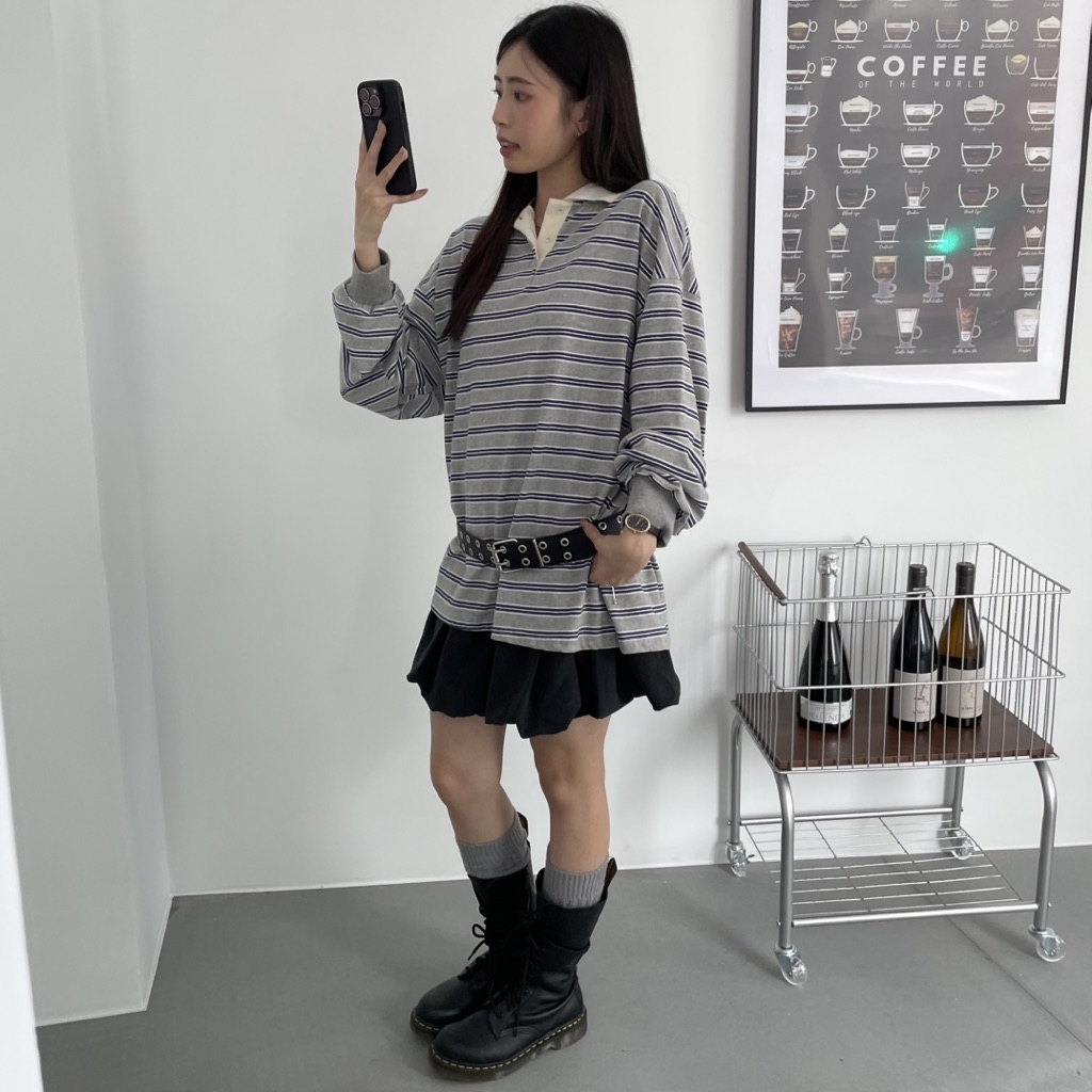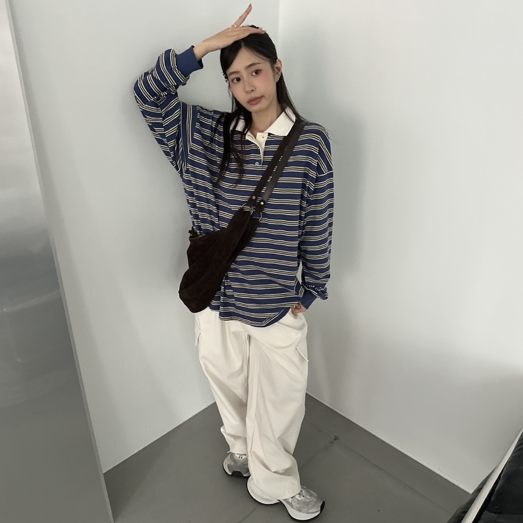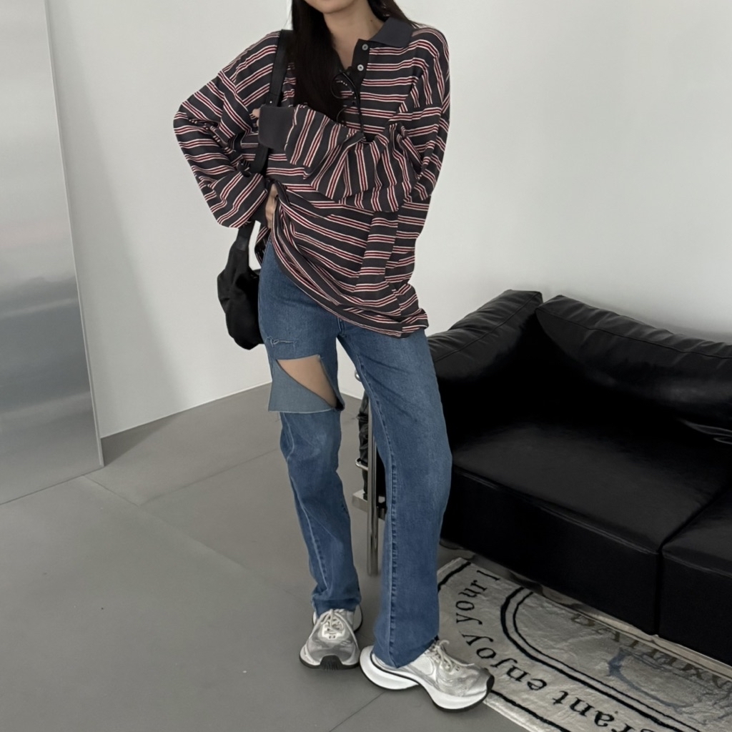 街上歐膩都在穿的韓國條紋POLO領大學tee