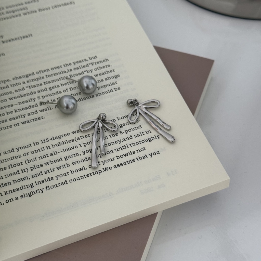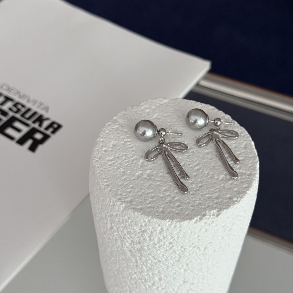 大銀珠垂墜蝴蝶結耳環
