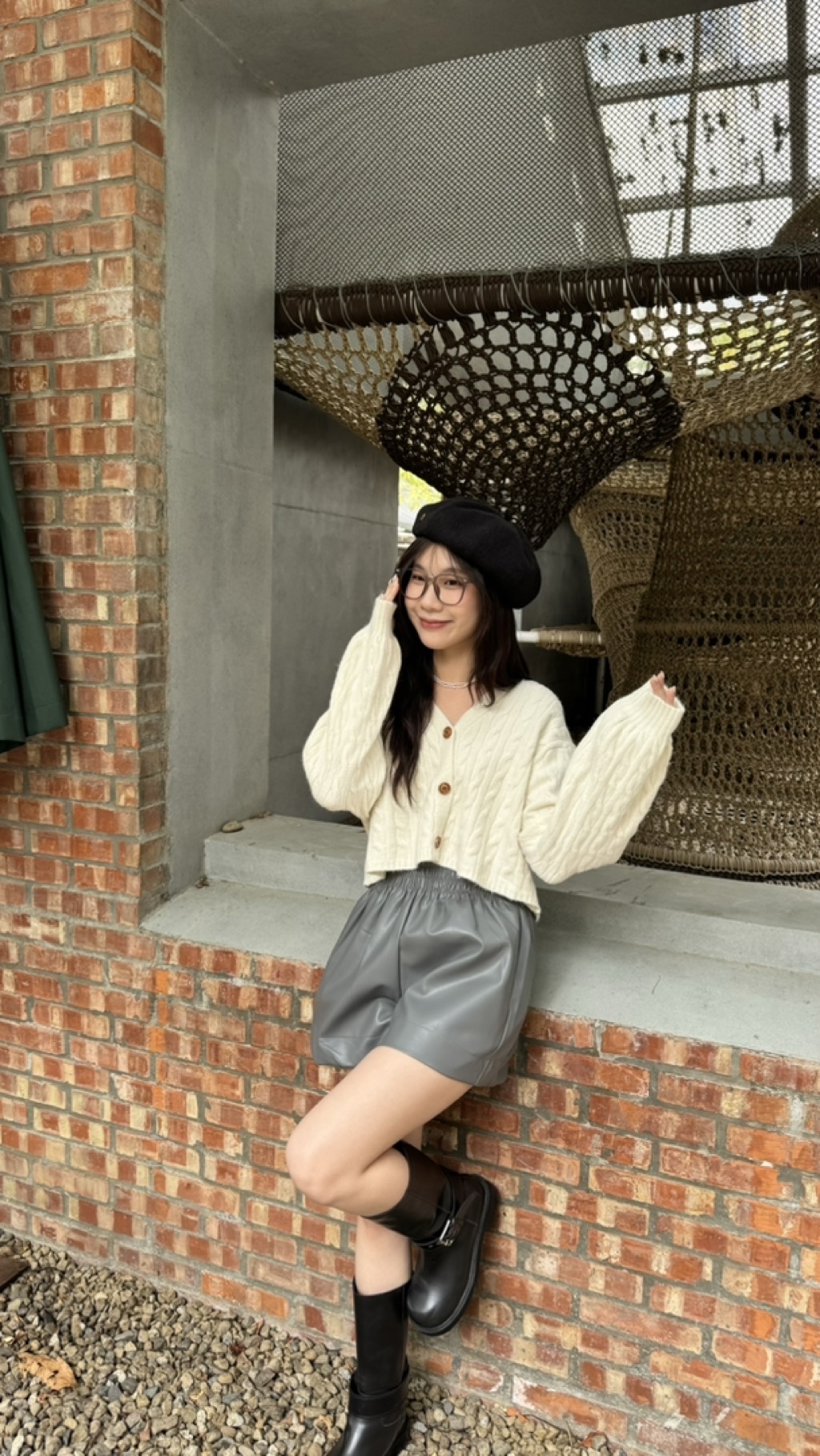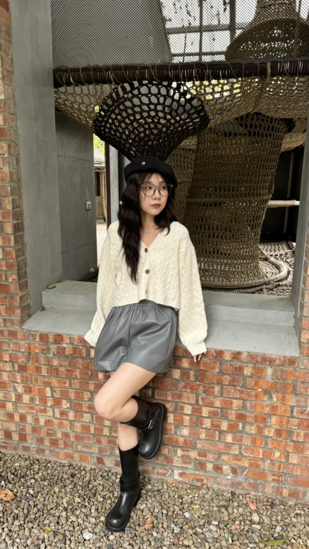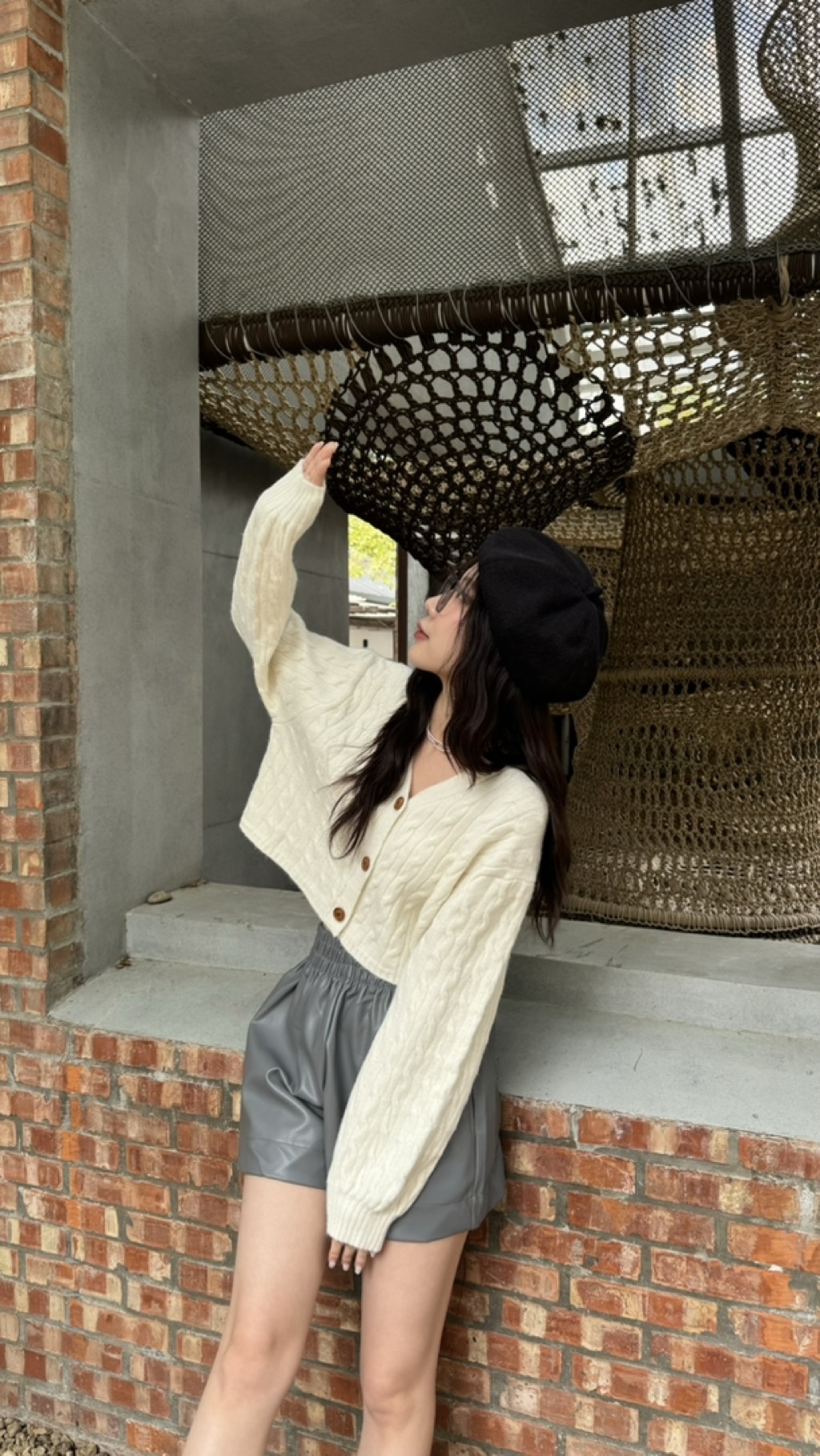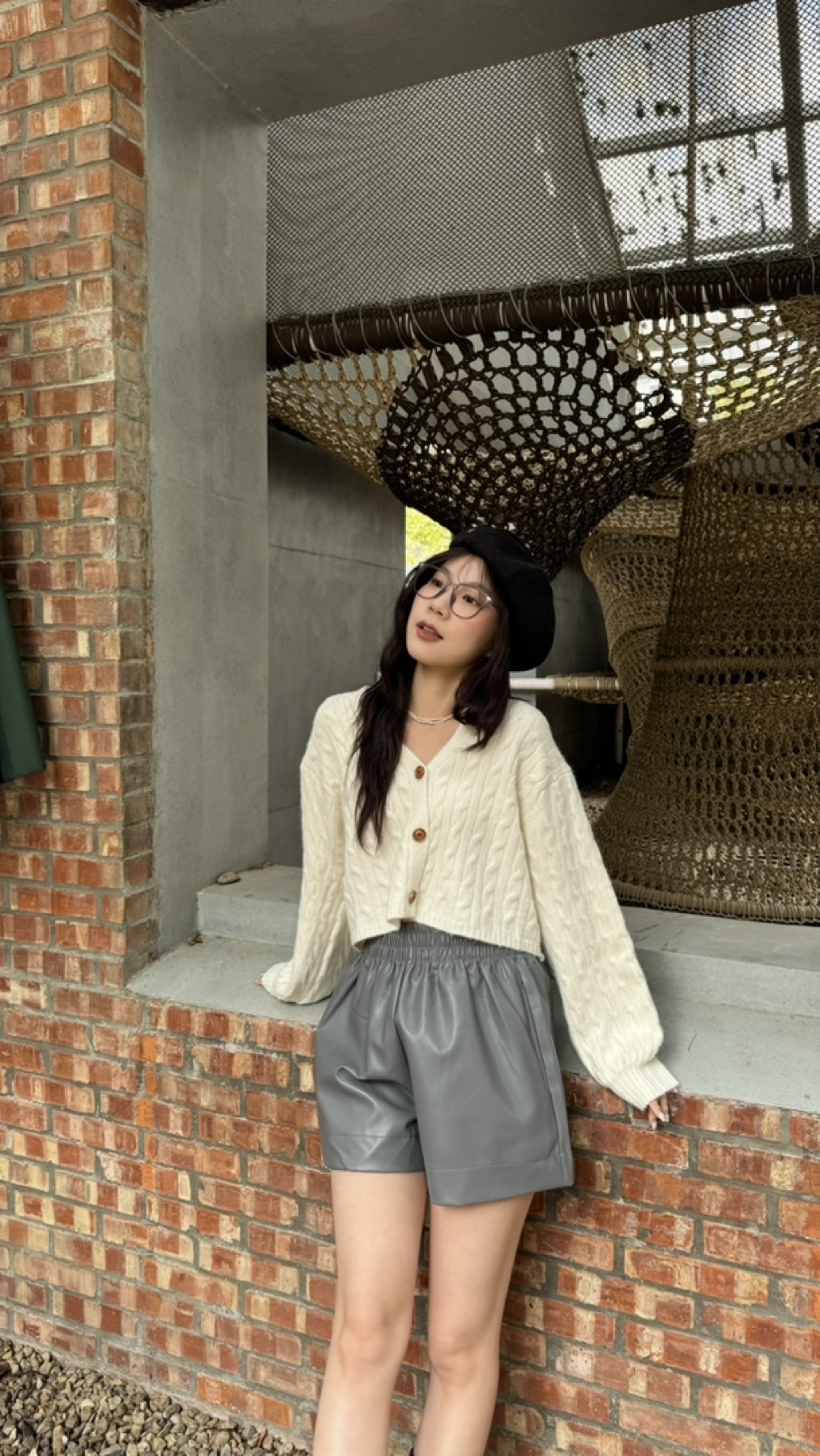 木釦微短板針織外套